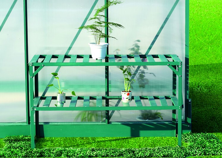 AL regál, zelená barva, rozměry d 126 x š 50 x v 75 cm, vhodný pro všechny typy skleníků.