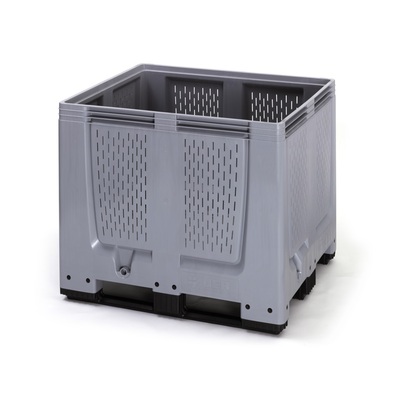 Stohovatelný paletový box 1200x800x790 a 1200x1000x790 s plnými stěnami a 4 nožkami nebo lyžinami. Varianta na nožkách může být doplněna o kolečka.