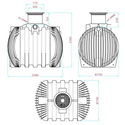 Šachta je součástí nádrže. Podzemní nádrž NEPTUN 4300 l má pevnou šachtu o výšce 450 mm. Výšku šachty lze případně jednoduše zkrátit nebo prodloužit použitím nádstavce.